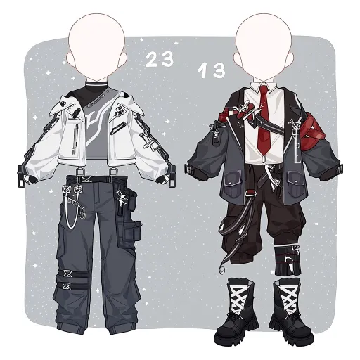 Midjourney Bot 更新时间:2026-03-09 00:08https://images.gogpt.vip/aigf/m_origin/20260308/1686785/fnbzrqpy9jt5807i.jpg 编号1:灰白黑萌系战术技工风Q版服设 整体风格 以纯白、深灰、曜黑为主调,结合Q版圆润比例,融合轻量化战术挂载、工具包与机能卡扣元素,打造出“战地小技工/维修师”的核心人设。自带“干练专业”与“软萌小巧”的强烈反差,像是随军执行设备抢修任务的天才少年,适配科幻或战术题材的Q版角色设定。 服饰细节 - 上衣层次:内搭黑灰拼色高领打底衫,领口饰白色细边,贴合Q版颈部比例;外搭白色短款机能夹克,采用不对称宽松剪裁,肩部、袖口做曜黑机能包边与方形卡扣装饰,衣身印浅灰机械纹路暗纹,左侧胸袋贴迷你工具标识贴。夹克下摆抽绳收束,露出腰间核心的战术挂载系统。 - 下装设计:深灰宽松工装裤,裤腿做立体贴袋,右侧悬挂黑色迷你工具腰包(内置扳手、螺丝刀造型装饰,精准锚定“技工”身份),左侧裤腿用黑色绑带束口,裤脚收紧,既适配Q版短腿比例,又强化工装实用性。 - 鞋履与配饰:黑色高帮战术靴,靴面饰白色交叉绑带,鞋头做圆润化处理(贴合Q版萌感);腰间核心配饰为银色工具挂扣、迷你卷尺装饰,是整套造型的“职业标识”。 编号2:黑红白金朋克执事风Q版服设 整体风格 以曜黑、酒红、纯白、亮银为主调,结合Q版萌态,融合执事正装、朋克链条与和风绳结元素,打造出“叛逆贵族小执事/乐团指挥”的核心人设。自带“优雅端庄”与“个性叛逆”的反差感,像是表面恪守礼仪、实则暗藏锋芒的宅邸小管家,适配欧式贵族或朋克题材的Q版角色设定。 服饰细节 - 上衣层次:内搭纯白立领衬衫,领口系酒红宽版领结(中心嵌亮银十字饰扣,强化精致感);外搭黑红拼色短款西装夹克,翻领为酒红撞色,左袖缝亮银徽章布贴,右袖装饰酒红和风绳结(带流苏垂坠,是视觉亮点),袖口做白色包边,利落线条兼顾执事的优雅与朋克的个性。 - 下装设计:曜黑修身西裤,裤腿外侧饰酒红拼色竖条,膝盖处绣白色虚线电路纹路,腰间系黑色宽腰带(配亮银方形腰带扣),右侧垂落长短错落的亮银链条(适配Q版比例,弱化链条的凌厉感),左侧挂小型皮质挂牌,打破正装的沉闷。 - 鞋履与配饰:黑色亮面小皮鞋,鞋头缀酒红小圆扣,贴合Q版小巧比例;颈部叠戴细款亮银十字项链,与领结饰扣呼应,右袖的和风绳结则成为“叛逆执事”的独特标识 --ar 1:1 --stylize 100 --iw 2 --niji 7