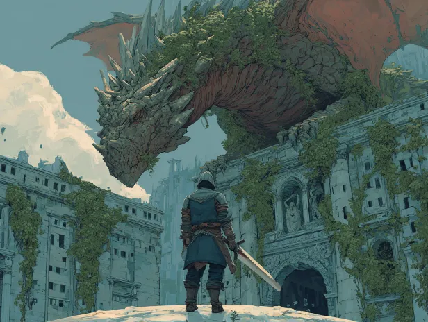 Midjourney Bot 更新时间:2026-03-09 00:05https://images.gogpt.vip/aigf/origin/20260308/1772983210729971_1.png https://images.gogpt.vip/aigf/m_origin/20260308/2078039/f52phox3bcpzyt0w.webp https://images.gogpt.vip/aigf/origin/20260308/1772984090881742_1.png https://images.gogpt.vip/aigf/m_origin/20260308/2078039/k31j37mnv07ep3pm.png https://images.gogpt.vip/aigf/origin/20260308/1772984090881742_2.png https://images.gogpt.vip/aigf/origin/20260308/1772984090881742_4.png https://images.gogpt.vip/aigf/m_origin/20260308/2078039/i5gaelc37ke6hupj.png https://images.gogpt.vip/aigf/m_origin/20260308/2078039/btfwfb6u2i4mehtq.png https://images.gogpt.vip/aigf/origin/20260308/1772983210729971_2.png https://images.gogpt.vip/aigf/origin/20260308/1772984090881742_3.png 一位身穿深色传统骑士铠甲的战士,背对观者,站立于大地上,身旁插着一把大刀,姿态沉稳,仿佛在凝视前方。一条体型庞大的巨龙,龙身覆盖粗糙鳞片,龙首狰狞,龙翼展开,盘旋于教堂之上,部分身体隐没在云雾中,营造出神秘与压迫感。一座宏伟的巴洛克风格教堂,教堂内部被绿色藤蔓缠绕,从柱子、墙壁到天花板,藤蔓自然生长,部分覆盖了壁画与雕塑,营造出的荒废美感营造出“废墟中的神圣感”。静谧、神圣、荒废、重生、自然与文明的交融、光影戏剧性、史诗感。天空阴暗,整体色调偏冷,神话生物的不可接触。日式奇幻插画风格,线条细腻,画面具有电影感与叙事性。 --ar 4:3 --v 7 --stylize 100 --iw 0.25 --sref https://images.gogpt.vip/aigf/m_origin/20260308/2078039/8zcyfyc5qb06jol1.png https://images.gogpt.vip/aigf/m_origin/20260308/2078039/k31j37mnv07ep3pm.png https://images.gogpt.vip/aigf/m_origin/20260308/2078039/f52qv8pvegoccobs.webp --sw 39