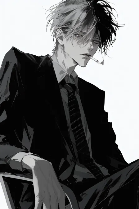 Midjourney Bot 更新时间:2026-03-08 00:23https://images.gogpt.vip/aigf/m_origin/20260209/1771643/vncguf9rhawvx1nn.jpg https://images.gogpt.vip/aigf/m_origin/20260209/1771643/vncguf9rhawvx1nn.jpg 一位年轻男子身穿黑色西装,坐在椅子上,展现出沉思的姿态。他的头发是浅色,略显凌乱,搭配着深色的条纹领带,整体形象显得既正式又充满个性。背景是纯白色,突出人物的轮廓与服装细节,整体风格现代而简约,具有较强的艺术感。侧面,抽着烟。 --ar 2:3 --stylize 100 --iw 0.3 --niji 6 --sref https://images.gogpt.vip/aigf/m_origin/20250822/1771643/nv2dkr1rkx1ao9gn.jpg https://images.gogpt.vip/aigf/m_origin/20250819/1771643/vsa9ul5kkw9kli4u.jpg --sw 314 --profile zdd71yn --no Don't wear glasses.