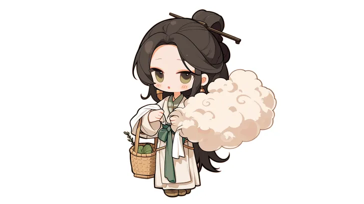 Midjourney Bot 更新时间:2026-03-09 00:01吉卜力卡通风格,采药少女,圆脸天然腮红,月牙眼,乌黑长发低马尾木簪固定,月白短袄淡绿比甲,腰挂小竹篓装草药,肩上搭白汗巾。身旁飘一团白色蓬松小云朵,有两只耳朵,会蹭人。纯色背景 ,8K,三维渲染。 --ar 16:9 --stylize 100 --niji 7