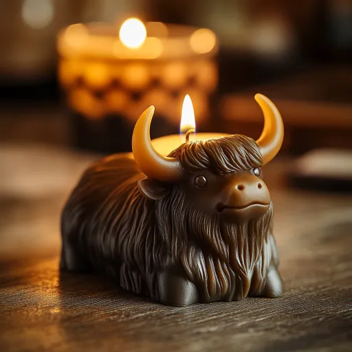 Midjourney Bot 更新时间:2026-03-09 00:02一头牦牛匍匐在地上形状的蜡烛,牦牛上的毛发光亮丝滑,蜡烛燃烧着火焰,背景是温馨的书桌。 --ar 1:1 --v 6.1 --style raw