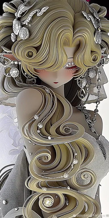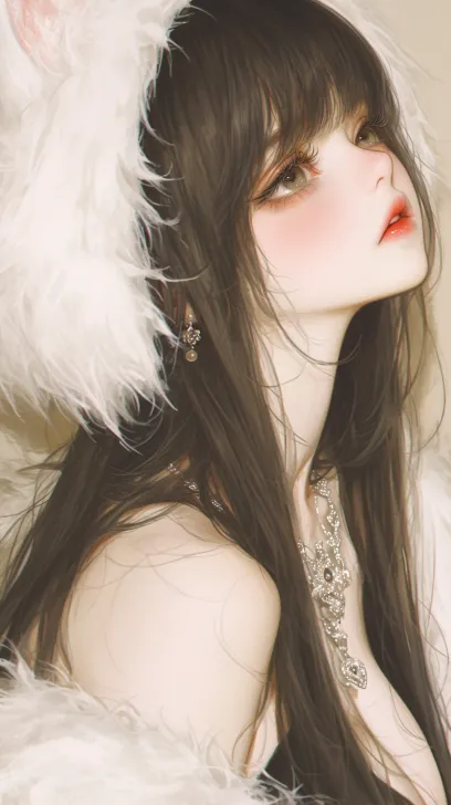 Midjourney Bot 更新时间:2026-03-06 00:21一位精致的金色卷发女孩,拥有像BJD玩偶般精致的五官、如瓷娃娃般的肌肤、眼神锐利而富有攻击性。她微微低头凝视着前方,长发飘逸动人,佩戴着华丽的宝石项链和耳环,身着黑色晚礼服,外披白色羽毛披肩,优雅地坐在沙发上。这幅画采用二维半厚绘画风格,色彩饱和度高,细节处理极为精妙,分辨率为8K,光影效果极佳,宛如电影般真实,场景美丽动人,氛围梦幻朦胧,光影对比强烈,充满奢华感与浪漫气息。昏暗的光线中散布着梦幻般的光点。夜晚,城市灯光透过窗户洒进来。光影交错,明暗对比强烈,充满氛围感,既美丽又浪漫,极具奢华感。 --ar 9:16 --c 7 --stylize 1000 --niji 6 --profile azgbxhb beuekdn 1jojrvu