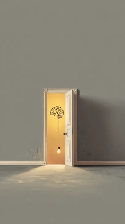 Midjourney Bot 更新时间:2026-03-06 00:29极简治愈插画,柔和暖橙与米白配色,干净浅灰背景,高清细节,扁平矢量风,画面中心是半开的白色纸门,门缝透出暖金色微光,微光中悬浮着一个发光的极简大脑轮廓,传递认知突破的治愈感,适配书籍配图 --ar 9:16 --v 7 --stylize 100