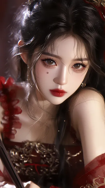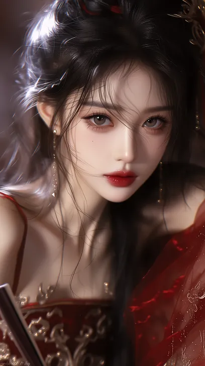 Midjourney Bot 更新时间:2026-03-06 00:36整体:厚涂CG插画,刻画细腻,大师构图,脸部刻画细腻,BJD精致面容,眼睛刻画细腻,颗粒感,朦胧感 人物:中式古代御姐,红楼舞姬,御姐风感觉,黑色长发蓬松长发,蓬松感,几缕发丝垂落脸颊,侧身斜看 雾面哑光妆容,水润感嘴唇,气色好 活泼感,气质出尘,傲娇感,妖媚的感觉 五官立体,绝美眼睛,瞳色较浅,清晰睫毛,细化瞳孔纹路和高光,梦幻,修长的眼睛,魅惑性的妆容,眼角修长,眼神勾人且犀利,精致眼睛,大眼睛 服饰:露着肩,中式古代红色纱衣汉服,有线条修饰展现朦胧感觉,胸口抹胸,金色纹路修饰 动作:慵懒的搭在卧榻上,头靠在一只手的手肘上,另一只手上拿着一把扇子 张力构图,广角大透视,画面冲击感强,视觉冲击,聚焦人物脸部和上半身 高级杂志 韩式半厚涂,高清数码写实,琉璃通透质感,现代校园操场背景,仰视视角 --ar 9:16 --seed 1144221753 --weird 416 --stylize 529 --niji 7
