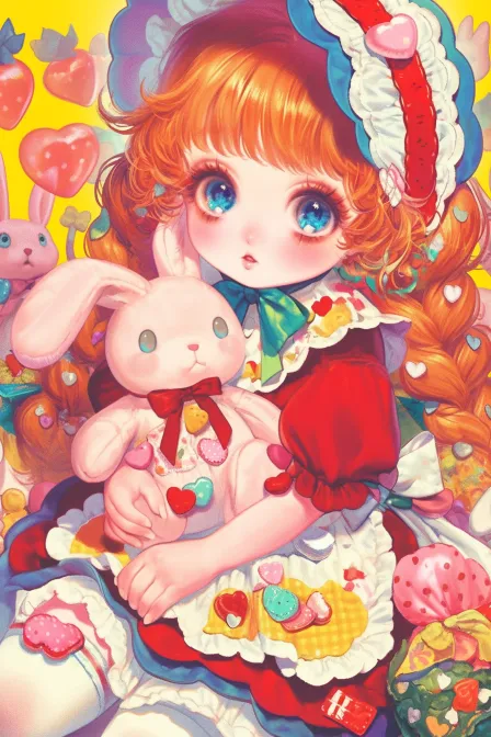Midjourney Bot 更新时间:2026-03-06 00:43https://images.gogpt.vip/aigf/m_origin/20260226/28068/ij5cf0w0e3hzl18u.jpg 一个可爱的女孩,拥有大大的蓝色眼睛和浓密的橙色卷发,穿着红色和白色相间的服装,装饰有心形图案。她抱着一个粉色的兔子玩具,身边还散落着形状各异的心形物件,整体画面透着甜美和温馨的气息。背景是柔和的蓝色,与女孩的服装形成鲜明对比,营造出一种梦幻的氛围。画面风格细腻,充满了童趣和可爱的细节。 --ar 2:3 --stylize 100 --iw 0.25 --niji 6 --sref https://images.gogpt.vip/aigf/m_origin/20251212/28068/30ld5mr8htu11upc.jpg https://images.gogpt.vip/aigf/m_origin/20251212/28068/hcnkwo6dl99hyizn.jpg https://images.gogpt.vip/aigf/m_origin/20251212/28068/cw1fgui11vfts7bx.jpg