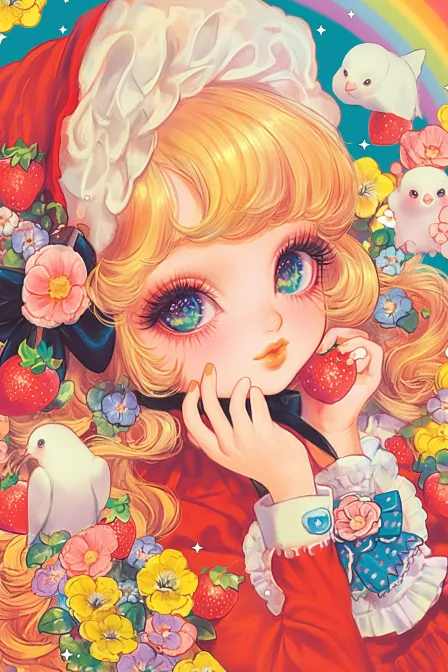 Midjourney Bot 更新时间:2026-03-06 00:43https://images.gogpt.vip/aigf/m_origin/20260226/28068/ij5cf0w0e3hzl18u.jpg 一位可爱的女孩,身穿红色的华丽服装,周围环绕着丰富的花朵和草莓。她的金色卷发中点缀着鲜花,脸上带着甜美的表情,眼睛大而明亮。背景中有彩虹和星星,营造出梦幻的氛围。画面中还有几只白色的小鸽子,增添了生动的细节。整体色彩鲜艳,充满了温暖和童趣的感觉。 --ar 2:3 --stylize 100 --iw 0.25 --niji 6 --sref https://images.gogpt.vip/aigf/m_origin/20251212/28068/30ld5mr8htu11upc.jpg https://images.gogpt.vip/aigf/m_origin/20251212/28068/hcnkwo6dl99hyizn.jpg https://images.gogpt.vip/aigf/m_origin/20251212/28068/cw1fgui11vfts7bx.jpg