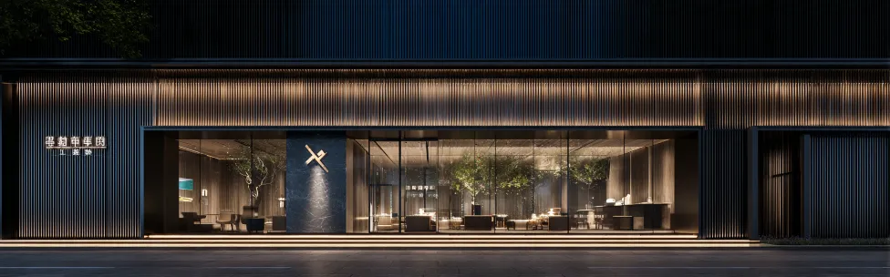Midjourney Bot 更新时间:2026-03-05 00:16豪华现代店面设计展现设计公司"柏年设计",立面宽7.35米高1.4米长横格式,背景为优质哑光黑色纹理金属面板,公司徽标和汉字采用厚厚的立体刷古铜色金属制成,带有背光效果散发柔和的黄金光辉在暗色底面上。整体风格极简高端,融入侘寂元素,受安藤忠雄建筑美学启发,适合别墅装饰客户群。夜拍场景采用电影级灯光,Octane渲染细节,8K分辨率建筑摄影。 --ar 16:5 --v 7 --stylize 100