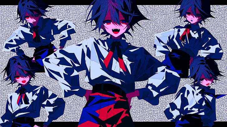 Midjourney Bot 更新时间:2026-03-05 00:28可爱的小男孩,黑色头发,鸢色眼睛,穿着白色衬衫,黑色长裤,凌乱的头发,绷带,全身,立绘,动态姿势,多个做出不同动作和表情的立绘,插画风格,被风吹起的头发 --ar 16:9 --stylize 100 --niji 7 --sref https://images.gogpt.vip/aigf/m_origin/20260115/2026762/1eoprd35li62arau.jpg --sw 1000 --no Hair,女仆装