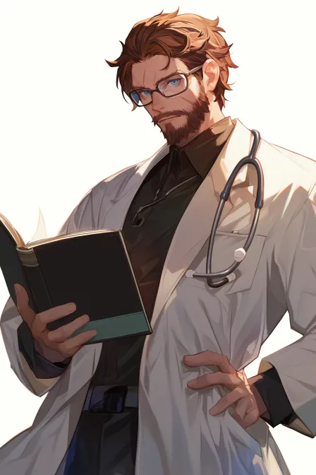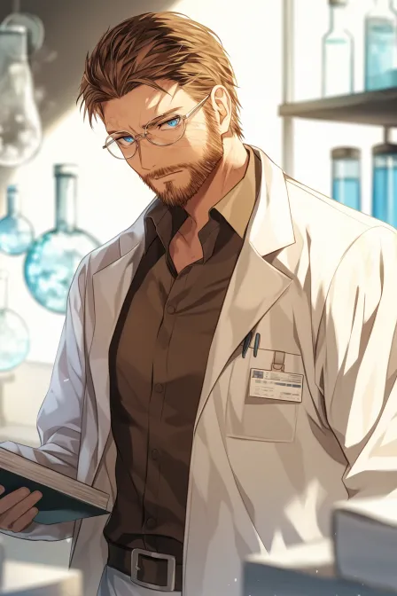 Midjourney Bot 更新时间:2026-03-06 00:01褐色头发男药剂师,欧洲人,头发有点稀疏,短头发,沧桑的脸,胡子,蓝眼睛,戴着眼镜,穿着医用白大褂,抱着书本,在实验室里,日漫二次元风格 --ar 2:3 --stylize 100 --niji 6 --no 美国旗