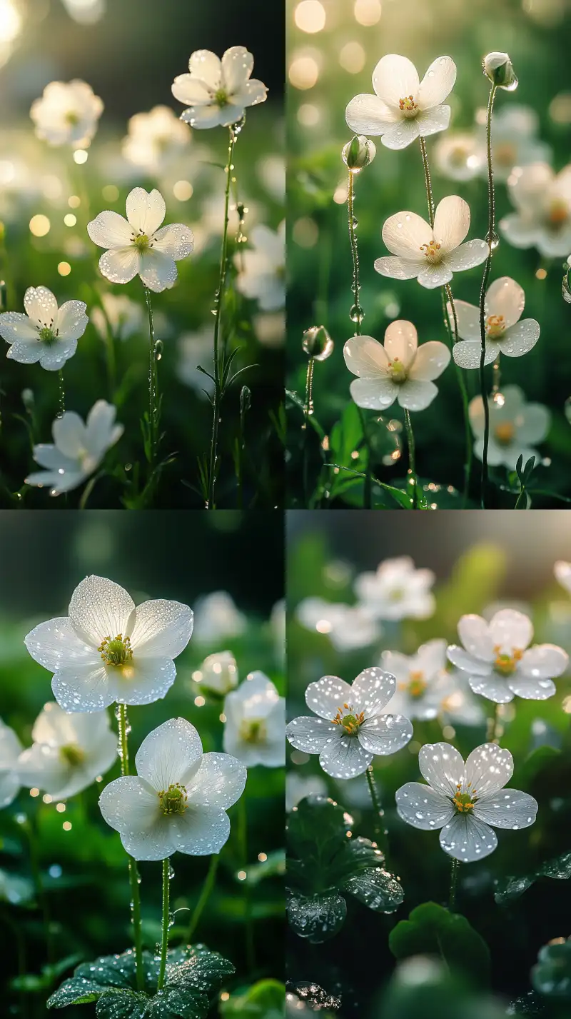 Midjourney Bot 更新时间:2024-09-30 00:14In the lush green grass, there is a row of white transparent wildflowers, with dew on the petals. These flowers have delicate, slender stems that contrast beautifully with the lush leaves in close-up shots. This scene creates a tranquil atmosphere with soft lighting, professional photography, high resolution, ultra-fine, best quality, ultra HD. --v 6.1 --ar 9:16 --style raw --s 651