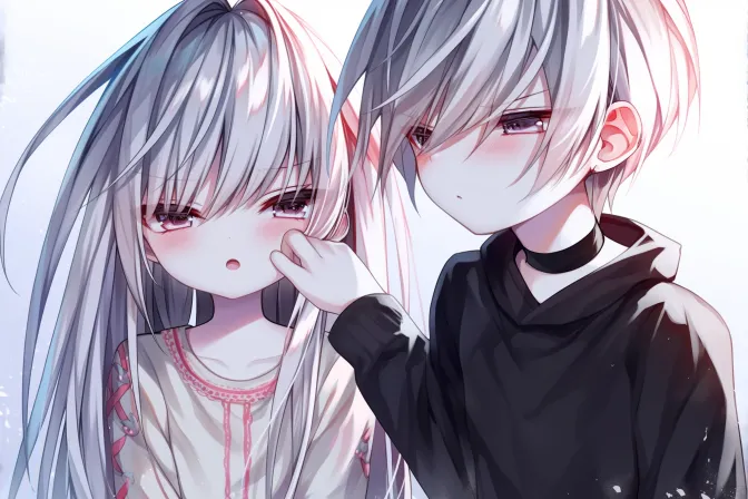 Midjourney Bot 更新时间:2026-02-24 00:04可爱的插画,展现了一位拥有粉色长发的小女孩和一位年轻男孩的互动。女孩的眼睛大而闪亮,面带羞涩的表情,穿着黄色的衣服,衣袖边缘有红色的花边。男孩则有着黑色的短发,表情稍显紧张,似乎在仔细注视着女孩。女孩用手轻轻抚摸男孩的脸颊,营造出一种温馨而亲密的氛围。整体风格偏向卡通,色彩柔和,细节简单而生动。 --ar 3:2 --stylize 100 --niji 6 --sref https://images.gogpt.vip/aigf/m_origin/20251211/1656733/aqambgaoa9yc6jev.jpeg --cref https://images.gogpt.vip/aigf/m_origin/20251211/1656733/w1hkkhn2v4437rpi.jpeg --cw 57 --sw 423