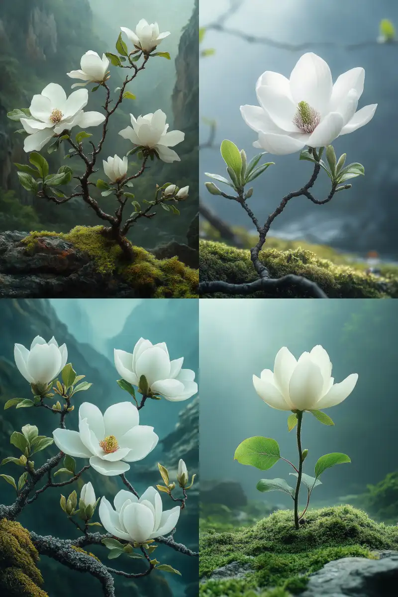 Midjourney Bot 更新时间:2024-09-22 00:06A white magnolia oil painting in a Chinese valley, with green leaves, moss, high definition, Chinese style, best quality, ultra-fine lines and shapes, ultra clear details, high resolution, high definition, high quality, professional photography effects, close-up art 16K, --v 6.1 --ar 2:3 --s 373