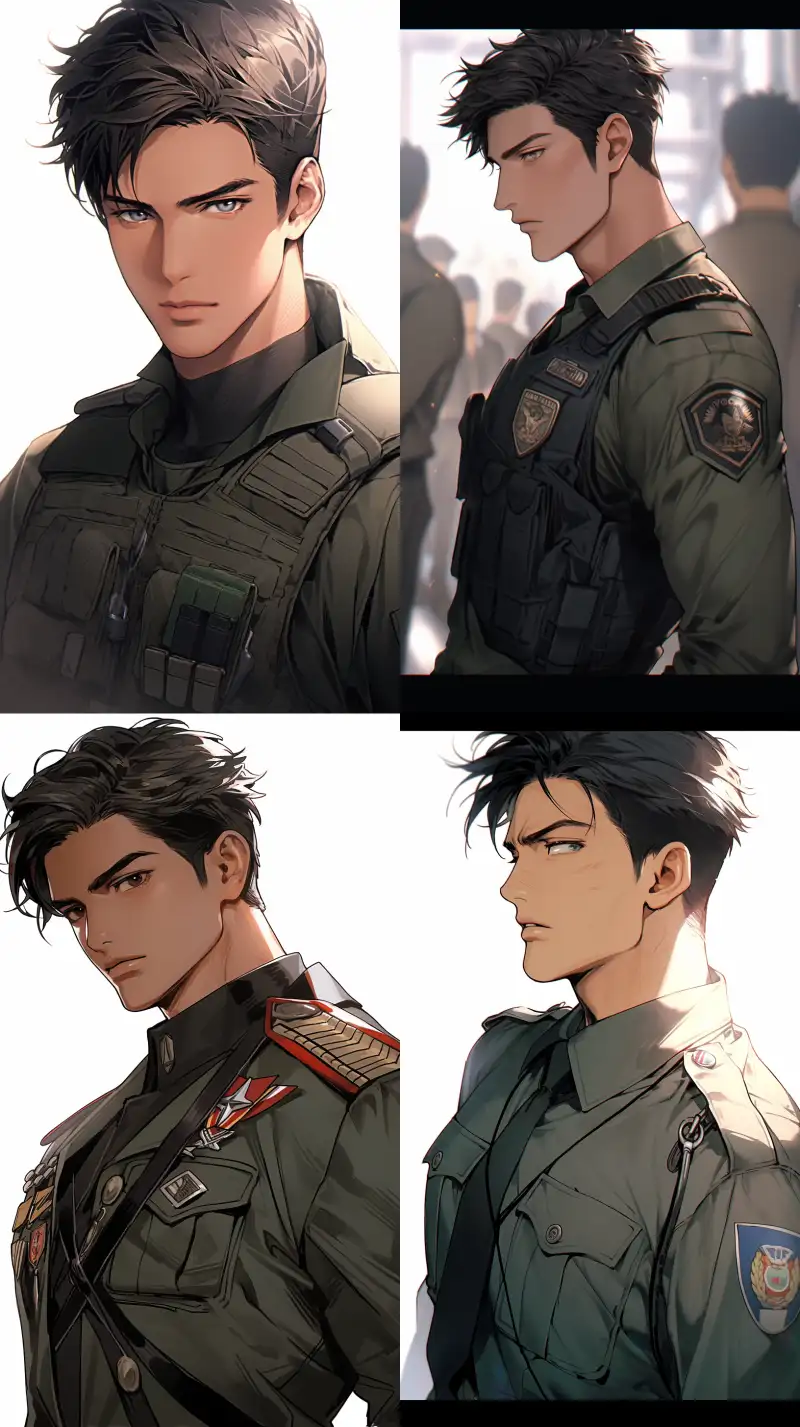 Midjourney Bot 更新时间:2024-09-15 00:12A handsome guy, short hair, black hair, 22 years old, sharp eyes, officer, agent military uniform, masterwork, side part, highest quality, character role, super handsome, cool beautiful man, upper body --niji 5 --ar 9:16