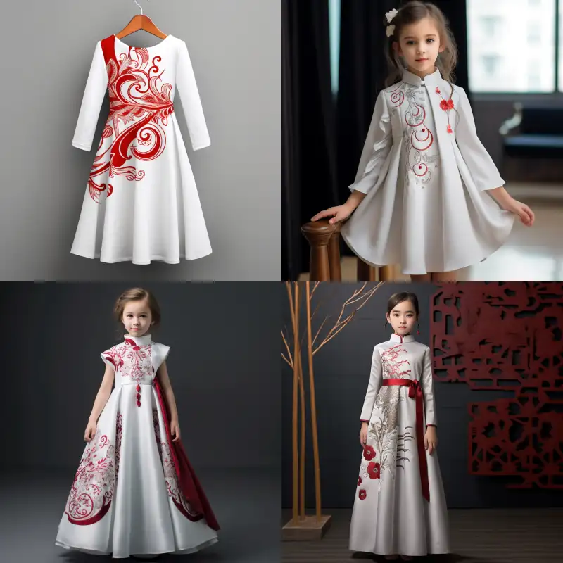 Midjourney Bot 更新时间:2024-09-14 00:04Design a modern and beautiful girls' choir dress, romantic and creative, with a special design in white and red. Decorated with new Chinese patterns, the overall style is festive and grand, front view. --v 5.2 --ar 1:1 --no /