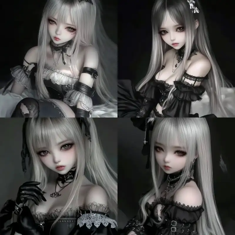 Midjourney Bot 更新时间:2024-09-14 00:06Input prompt words: (Ball pointed Doll, highly realistic, 3D modeling, lifelike, BJD doll, BJD doll) Gothic girl, Gothic skirt, Gothic hair accessory, oil painting, lifelike, big wavy hair, battle damage, black background, fluffy skirt, modeling, oil painting, thick and heavy hair, anime character, anime character, long eyelashes, --sref