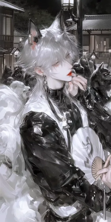 Midjourney Bot 更新时间:2026-02-22 00:19https://images.gogpt.vip/aigf/m_origin/20260210/2031159/2e19x7r7x9r5i3tg.jpg https://images.gogpt.vip/aigf/m_origin/20260129/2031159/cus30md9cjbok8dy.jpg 沉沉夜色如墨泼洒,古旧的鸟居朱漆剥落,隐在浓得化不开的夜雾里,檐角垂落的铜铃寂然无声,唯有斑驳的石灯燃着幽绿鬼火,明灭间映出整条长街的森然轮廓。青瓦叠叠的日式古街向夜色深处延伸,木造楼宇的窗棂紧闭,纸窗后偶有阴邪影子掠过,街边倒伏的石灯笼、生满青苔的石狮子,皆被百鬼夜行的阴翳笼罩,死寂得只剩鬼魅步履的细碎声响。 众妖簇拥之中,那狐妖缓步走在正中央,身姿颀长挺拔,步履轻缓从容,自带一股睥睨群邪的矜贵气场。他右手轻执一柄素白折扇,扇面绘着淡墨九尾狐纹,扇骨是温润的象牙质地,指节分明的手随意捻着扇柄,时而轻摇半扇,时而抵在唇边轻抵,动作慵懒又带着漫不经心的妖冶,每一步都踏得稳而慢,仿佛这森罗百鬼,不过是他身侧陪衬。 容貌是倾世的俊美,却藏着狐族独有的狡黠与妖异。肤色是冷调的瓷白,衬得眉骨锋利利落,眉尾细长上挑,晕开一抹极淡的绯色,眼型是勾人的桃花眼,瞳色是澄澈又幽深的琥珀金,眼尾微微上翘,流转间尽是惑人心魄的风情,眼底却覆着一层清冷疏离,不见半分凡俗暖意。鼻梁高挺流畅,唇形薄而精致,唇色是浅淡的绯樱色,唇角微扬似笑非笑,平添三分邪魅。耳尖隐有雪白狐毛微露,额间未显妖纹,唯有垂落的墨发间,几缕银白发丝随风轻拂,暗藏九尾天狐的尊贵。 衣着极尽雅致华贵,一身玄色暗纹和服,衣料是顺滑的暗纹锦缎,其上用银线绣着流云与九尾狐图腾,暗光流动间尽显奢靡。腰间系着朱红腰带,缀着温润的墨玉佩饰,垂落的穗子随步履轻晃,外罩一件半透明的月白色纱衣,随风轻扬,添了几分飘逸出尘。领口微敞,露出线条清晰的锁骨,既显妖冶随性,又不失上位者的端庄气度。 身后百鬼形态各异,青面獠牙的鬼怪、披头散发的女妖、身形佝偻的精怪皆敛声屏气,不敢逾越半分,以他为轴心缓缓前行。幽绿鬼火缠绕周身,将他俊美的轮廓勾勒得愈发清晰,狐妖垂眸轻摇折扇,金瞳微抬扫过身前古街,笑意浅淡,却自带掌控百鬼的威严,于森然夜色中,成了最夺目也最妖异的存在。 --ar 1:2 --stylize 100 --iw 0.5 --niji 7 --sref https://images.gogpt.vip/aigf/m_origin/20260129/2031159/cus30md9cjbok8dy.jpg https://images.gogpt.vip/aigf/m_origin/20260210/2031159/2e19x7r7x9r5i3tg.jpg --sw 540