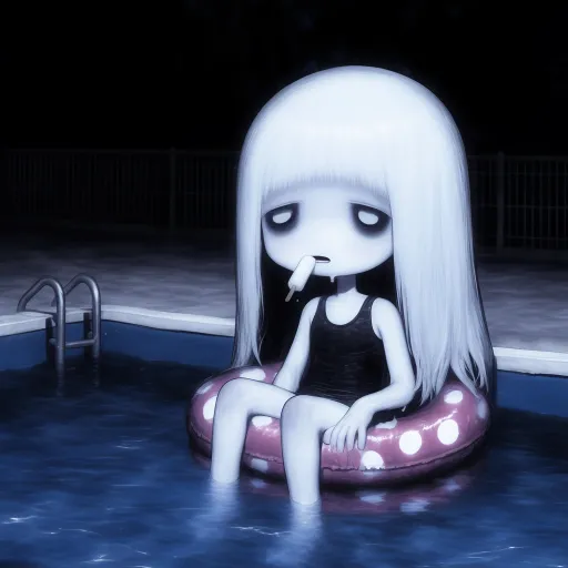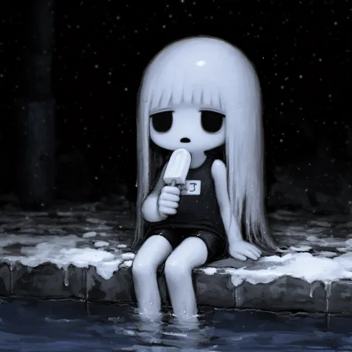 Midjourney Bot 更新时间:2026-02-22 00:19蓝色氛围插图,一位幽灵般的小女孩,四肢纤细,白色长发,身穿黑色背心黑色短裤,游泳圈,冰淇淋,背景是下雪天的学校游泳池,有微弱的光源,展现出梦幻而超现实的风格,细致的笔触和柔和的蓝色渐变,营造出一种奇异而宁静的氛围。 寂静岭,J恐怖动漫风格, --ar 1:1 --stylize 100 --niji 6 --sref https://images.gogpt.vip/aigf/m_origin/20250805/1651402/l9wqdgf05boy1nfu.jpg https://images.gogpt.vip/aigf/m_origin/20251002/1651402/b16rx7w3w5ago4ml.jpg https://images.gogpt.vip/aigf/m_origin/20251209/1651402/z9pc5aq0dzfpthfq.png --sw 441 --profile m7365757308191637516 m7281980437583364102 m7353245966859763722