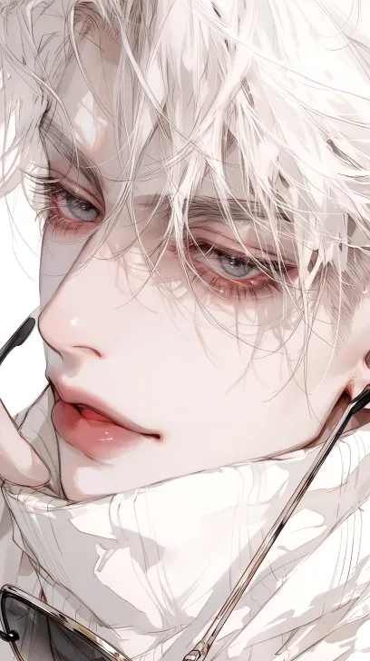 Midjourney Bot 更新时间:2026-02-22 00:12动漫男,伪厚涂,半身图,半身插画,高清画质,高质量,白发,短发,灰蓝色眼睛,时髦男人,年轻,单手插兜俯身看着我,墨镜,抬手拉下墨镜,高领毛衣, 坏笑挑衅,骚包,极致的光影细节,高贵、精致且清晰的面部特征,浅粉色的嘴唇,纤细的眼睛,长睫毛,斜角镜头,男性脸,成熟男子,轻盈成熟的风格,写实风格,单身男子,美丽的眼睛,长睫毛,细腻的笔触,柔和的光影,细腻的渲染,高分辨率,设计,清晰度,细节还原,极致细节,渲染,光线追踪, 细节精细,超高清,高细节,精致--p --ar 9:16 --stylize 1000 --niji 7 --profile spr1pcg --no 十字架,cross