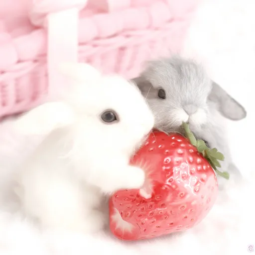 Midjourney Bot 更新时间:2026-02-23 00:00https://images.gogpt.vip/aigf/m_origin/20250901/1716272/d9jqsox1f8x7yzyw.png A white baby rabbit is on the left, and another gray baby rabbit is on the right, holding a giant strawberry, facing the audience, with a pink plush carpet in the background, realistic white and pink tones. --ar 1:1 --style raw --stylize 100 --iw 0.25 --niji 6 --sref https://images.gogpt.vip/aigf/m_origin/20250722/1716272/oi1173l77kvguyth.png --sw 361 --no Text,watermark,texture,white pattern.