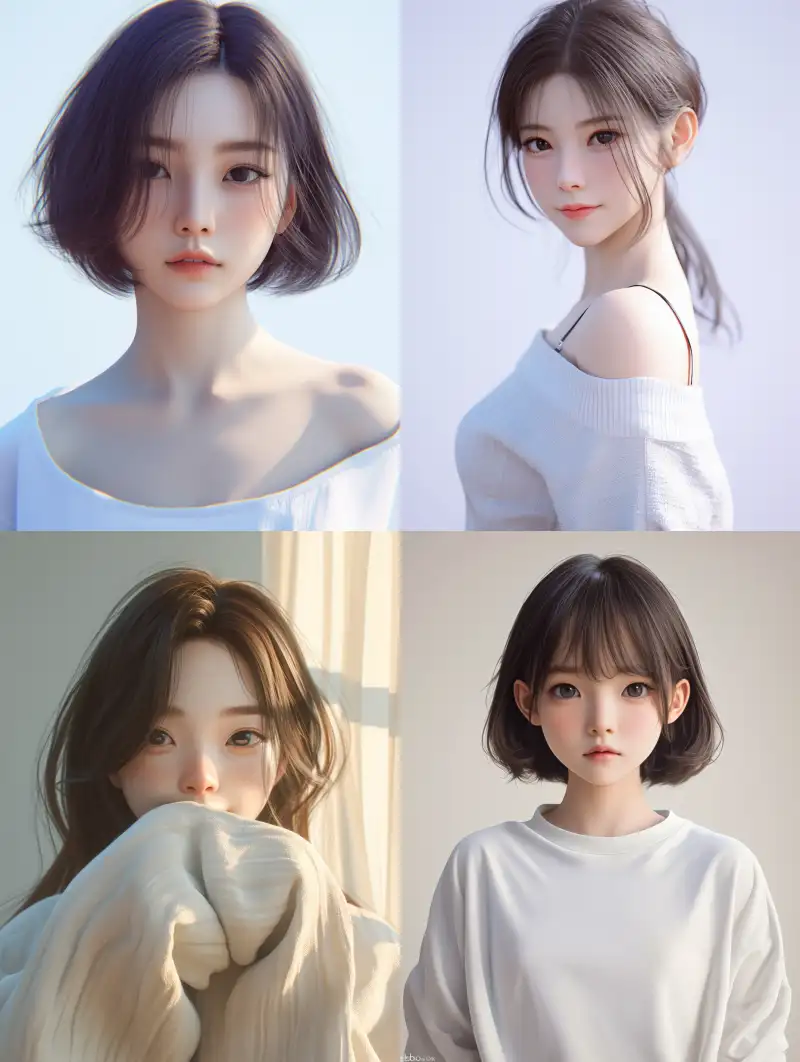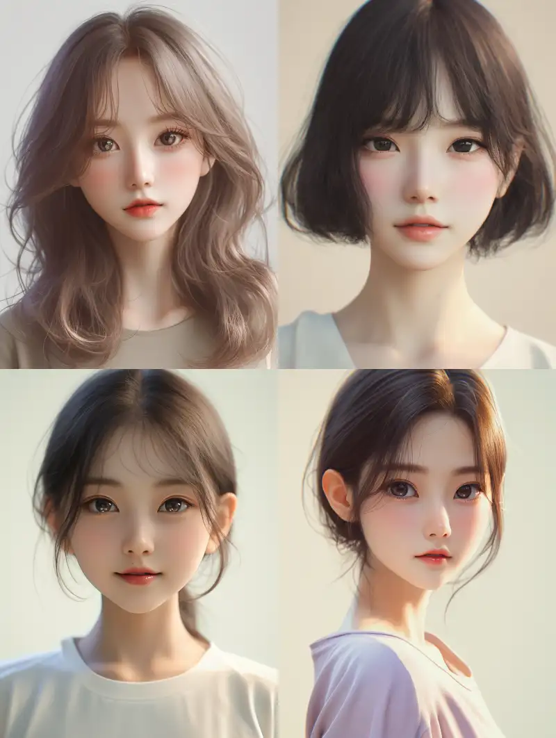 Midjourney Bot 更新时间:2024-09-06 00:11A pure and lovely young Korean girl with a shy smile, thick coating, cool white skin tone, clear dark eyes, rich facial details, CG rendering, 8K, medium shot, half body composition, low saturation, cool color tone, thick coating, live action photography effect, facial ultra high definition rendering, --niji 6 --ar 3:4 --no earrings, accessories, Necklace, a collar for a horse