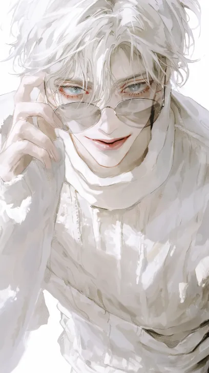 Midjourney Bot 更新时间:2026-02-22 00:00动漫男,伪厚涂,半身图,半身插画,高清画质,高质量,白发,短发,灰蓝色眼睛,时髦男人,年轻,单手插兜俯身看着我,墨镜,抬手拉下墨镜,高领毛衣, 坏笑挑衅,骚包,极致的光影细节,高贵、精致且清晰的面部特征,浅粉色的嘴唇,纤细的眼睛,长睫毛,斜角镜头,男性脸,成熟男子,轻盈成熟的风格,写实风格,单身男子,美丽的眼睛,长睫毛,细腻的笔触,柔和的光影,细腻的渲染,高分辨率,设计,清晰度,细节还原,极致细节,渲染,光线追踪, 细节精细,超高清,高细节,精致--p --ar 9:16 --style raw --stylize 1000 --niji 6 --profile spr1pcg --no 十字架,cross