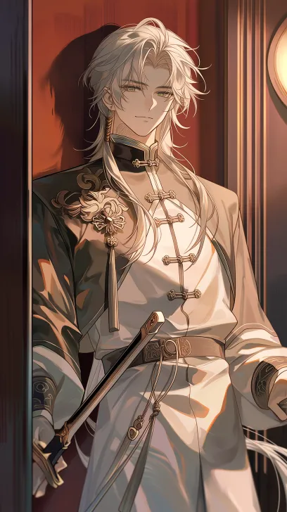 Midjourney Bot 更新时间:2026-02-22 00:01一个穿着中国传统服饰的古代留着长发和白色刘海的俊美动漫男人,怀孕,拿着剑,站着墙壁边电影灯光,戏剧性阴影,清晰轮廓,细腻渐变,杰作,细节丰富,正面视角,纹身 --ar 9:16 --stylize 100 --niji 7 --no no