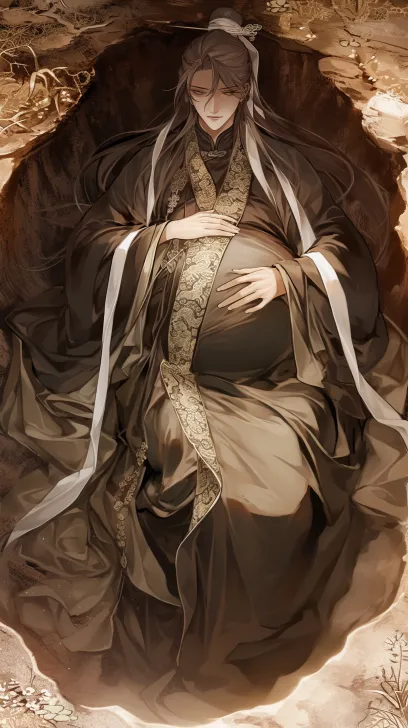 Midjourney Bot 更新时间:2026-02-22 00:05一个穿着中国传统服饰的古代留着长发和白色刘海的俊美动漫男人,pregnant,绫罗绸缎,躺在坑里 --ar 9:16 --style raw --stylize 100 --niji 6 --no no