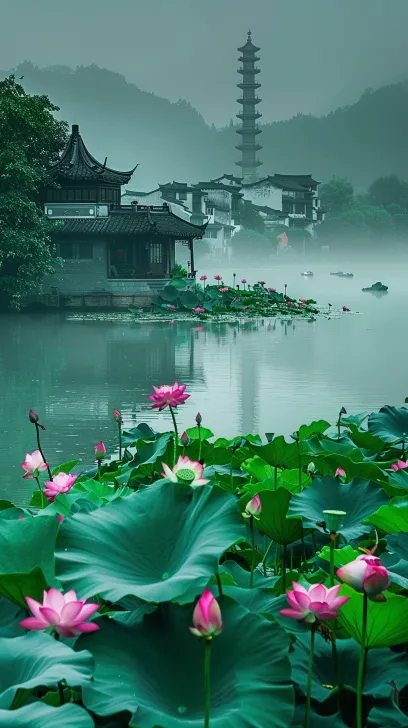 Midjourney Bot 更新时间:2026-02-21 00:18大师级风景照,唯美风光摄影,高饱和度,超高清,江南水乡,烟雨朦胧的感觉,夏季荷塘 --ar 9:16 --v 6.0 --stylize 100