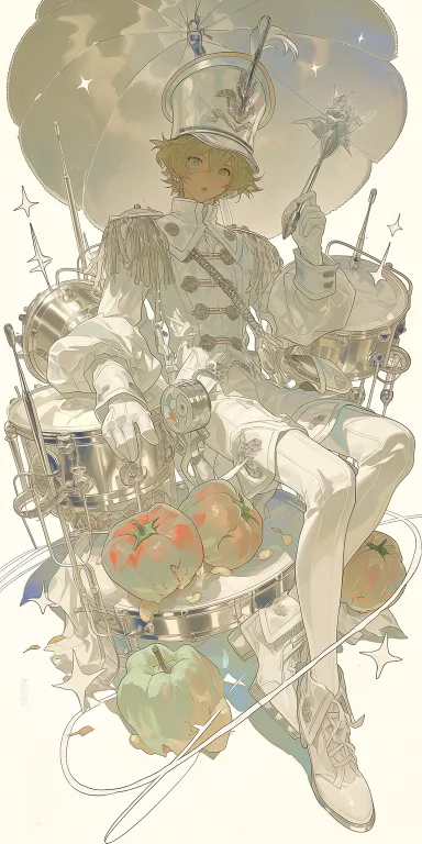 Midjourney Bot 更新时间:2026-02-21 00:20商业插画,二次元塔罗风格卡背,一只鸣锣敲鼓的玩具猩猩,背后有着机械发条,穿着羊绒华丽绒袍,身边都是烂掉的番茄和鸡蛋,皇室国王的气质 --ar 1:2 --c 3 --stylize 554 --niji 7 --sref https://images.gogpt.vip/aigf/m_origin/20260220/140639/t73j9suxwfzhv3qk.png https://images.gogpt.vip/aigf/m_origin/20260220/140639/7k3f07puturs1vrr.png --sw 388