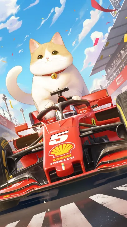 Midjourney Bot 更新时间:2026-02-21 00:19开F1方程式赛车的可爱猫咪 --ar 9:16 --stylize 100 --niji 6