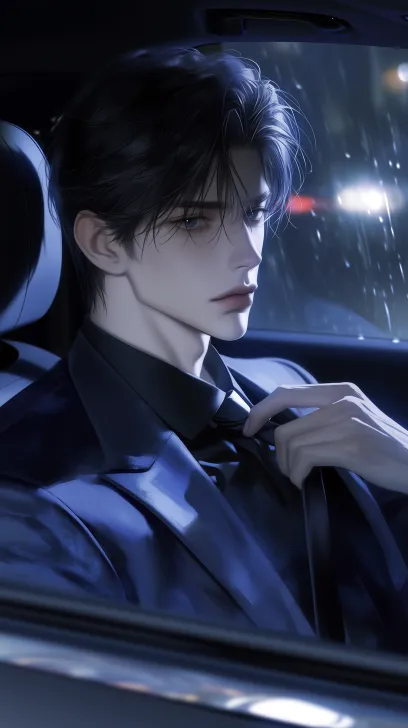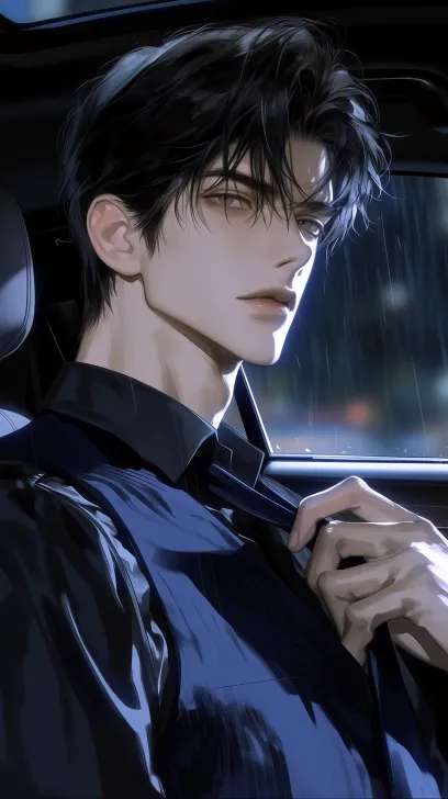 Midjourney Bot 更新时间:2026-02-21 00:12(Master-level thick painting: 1.3), (Pseudo-thick painting), (Semi-realistic), (2.5D)(Extremely delicate skin texture: 1.2), (Top-notch detail), (High-end light and shadow) cinematic lens feel. A 35-year-old handsome man, with black hair, deep-set eyes, an oval face shape, and a cold, steady temperament. Wearing a black shirt and a custom dark blue vest, sitting in the back seat of a luxury car. Side top-down perspective, half-body close-up, looking out the car window, expression cold, adjusting his tie. The background is a blurred rainy night car window with flowing lights. The atmosphere exudes sexual tension and mystery. (Dark tone background: 1.3)(Ambient light: 1.2) --ar 9:16 --stylize 500 --niji 7