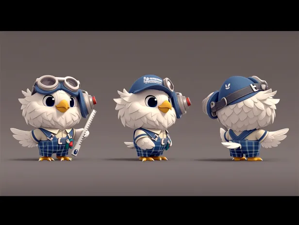 Midjourney Bot 更新时间:2026-02-20 00:35https://images.gogpt.vip/aigf/m_origin/20260220/2060286/mb3qzjj36t2xpf5d.png 一个3D渲染的可爱吉祥物设计,卡通丹顶鹤,拟人化,穿着蓝色工程师牛仔背带裤和小学士帽,额头上戴着机械护目镜。一只翅膀拿着绘图尺。以三视图格式(正面、侧面、背面)站立在 neutral grey 背景上。角色应有友好的微笑,色彩鲜艳,皮克斯动画风格,高细节,4K分辨率,柔和的灯光。象征着齐齐哈尔工程学院。 --ar 4:3 --stylize 100 --iw 0.25 --niji 7