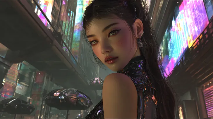 Midjourney Bot 更新时间:2026-02-21 00:12一位美丽的科幻女性,身穿发光的高科技装备,站在未来都市的霓虹街道上。背景有悬浮车辆、摩天大楼和全息投影,呈现出赛博朋克风格。细节逼真,使用Octane渲染和光线追踪效果,全身照片特写镜头,柔和的霓虹背光营造神秘氛围。多彩的视觉效果突显皮肤质感,娇媚的表情增添魅力,风格受未来主义艺术家启发。 --ar 16:9 --v 7 --style raw --c 6 --stylize 52 --no cartoon,bright colors
