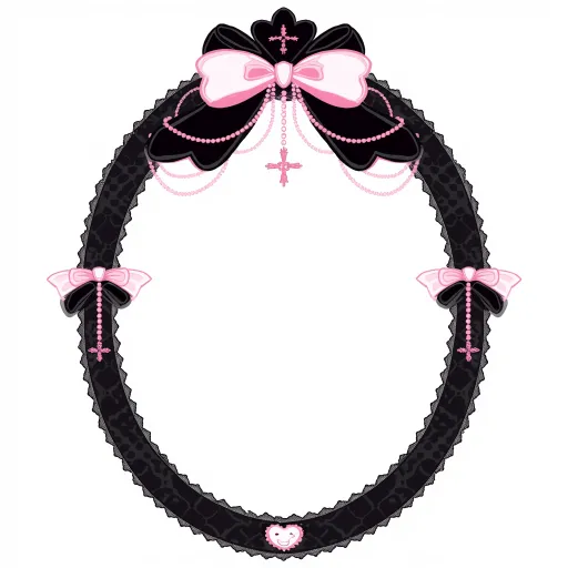 Midjourney Bot 更新时间:2026-02-20 00:36https://images.gogpt.vip/aigf/m_origin/20260219/1543705/ebmx0vtb9379aa0y.png The elegant transparent frame design presents an oval shape, primarily using a black and pink color scheme. The top is adorned with a large bow and hangs a delicate chain, complemented by a small cross. The edges of the frame are decorated in a lace style, adding a touch of delicacy. There are two small frames on the left and right sides; the left side features a pink heart-shaped bow and a cross, while the right side has a black bow and a cute smiley face decoration. The overall design is full of sweetness and mystery, making it suitable for displaying personalized photos or artworks. --ar 1:1 --style raw --stylize 100 --iw 0.3 --niji 6 --profile fjawgyg