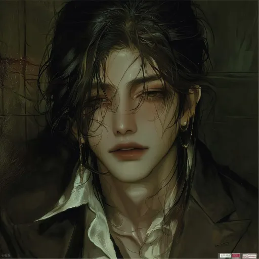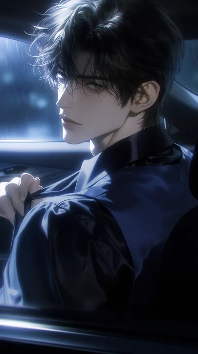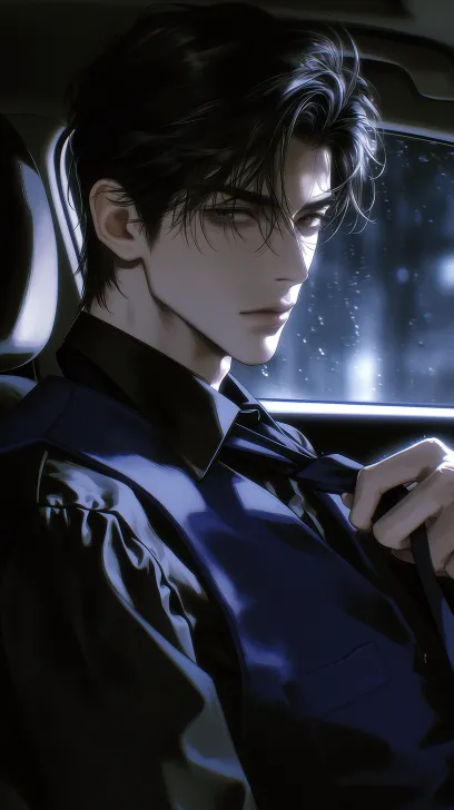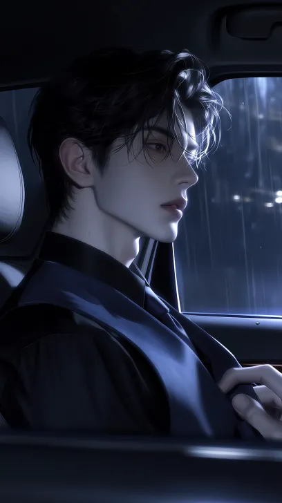 Midjourney Bot 更新时间:2026-02-21 00:02(Master-level thick painting: 1.3), (pseudo-thick painting), (semi-realistic), (2.5D)(extremely delicate skin texture: 1.2), (top-notch details), (advanced lighting and shadow) cinematic lens feel. A 35-year-old handsome man, with black hair, deep-set eyes, an oval face shape, and a cool, steady temperament. Dressed in a black shirt and a high-end navy blue vest, sitting in the back seat of a luxury car. Side upper view perspective, half-body close-up, profile looking out the car window, expression cold, pulling at his tie. The background is a blurred rainy night car window light stream. The atmosphere exudes sexual tension and mystery. (Dark tone background: 1.3)(Ambient light: 1.2) --ar 9:16 --stylize 500 --niji 7