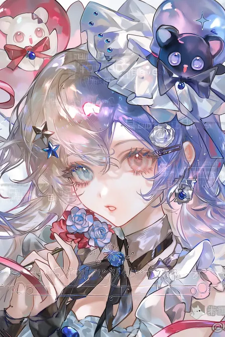 Midjourney Bot 更新时间:2026-02-20 00:40可爱的动漫少女,长发黑白相间,柔顺地垂落。她的眼睛大而明亮,透出紫色的光泽,脸颊微微泛红,显得娇嫩可爱。她穿着一件白色衬衫,领口系着黑色蝴蝶结,微微露出肩膀,展现出迷人的气质。背景模糊,暗色调的窗户透出柔和的光影,增添了神秘感。画面中点缀着细小的光点和花瓣,增强了梦幻氛围,整体风格细腻,充满了青春的气息。 --ar 1:1 --v 7 --stylize 100 --sref https://images.gogpt.vip/aigf/m_origin/20251231/1656733/ovrf79v1gnaf81t7.jpeg --oref https://images.gogpt.vip/aigf/m_origin/20260214/1656733/pgoisdbg78y6p3fo.jpeg --ow 400