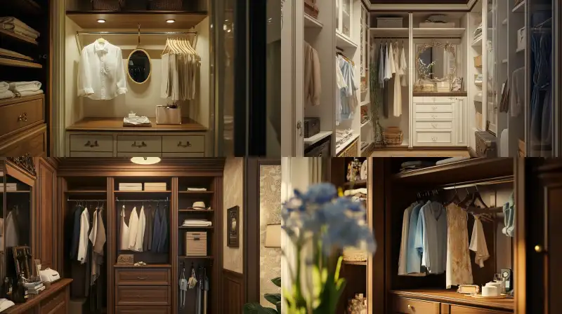 Midjourney Bot 更新时间:2024-08-16 00:02The cloakroom, hangers, and other items are neatly arranged on shelves, and there is a folding small mirror on the cabinet door, with an elegant style and a front view of the wardrobe --v 6.1 --ar 16:9