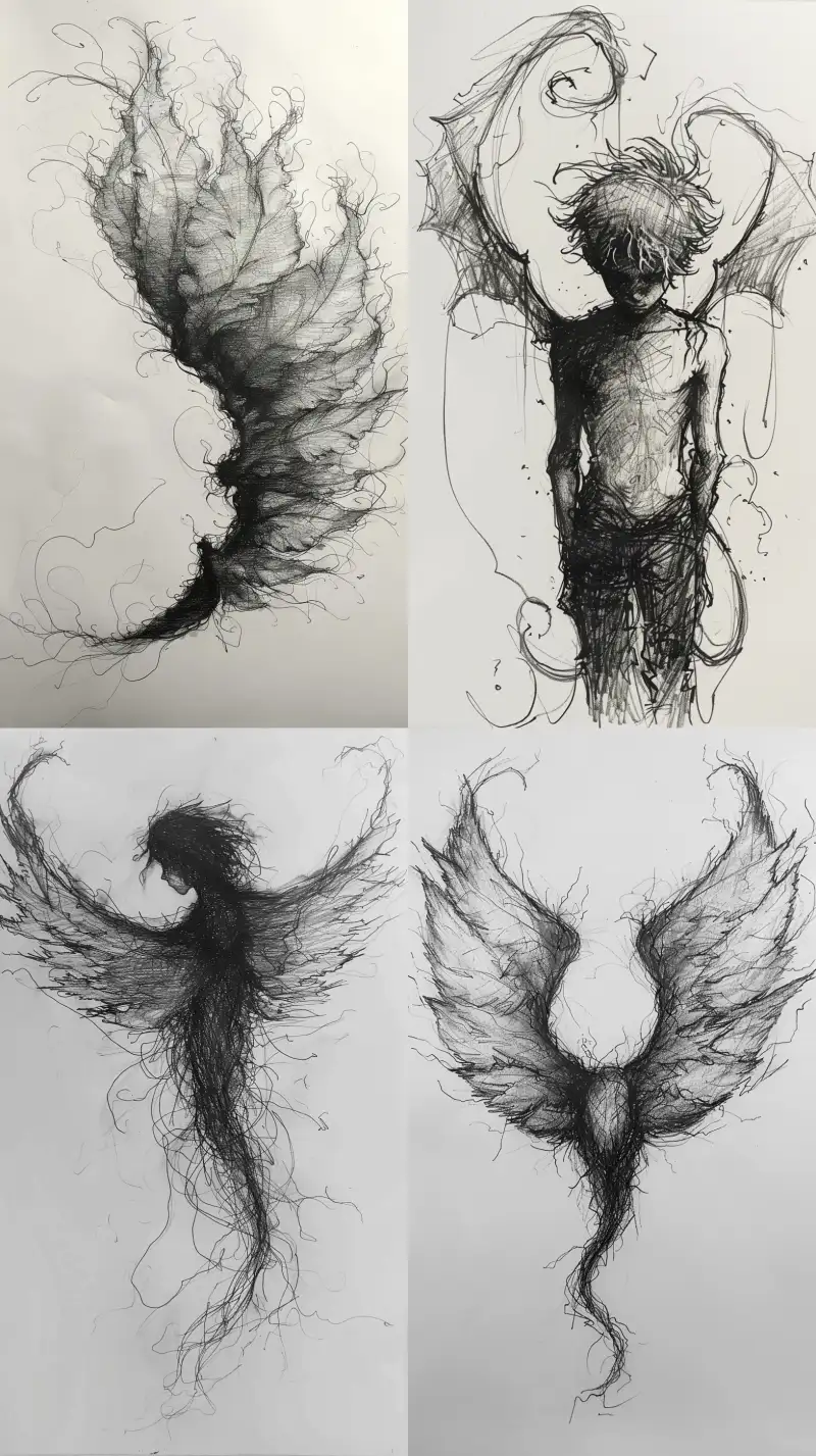 Midjourney Bot 更新时间:2024-08-13 00:05Pure hand drawn, pure sketch, black and white hand drawn, Seven Deadly Sins, Wings --sref