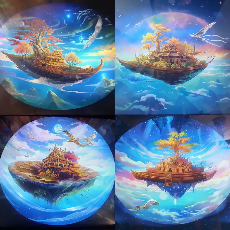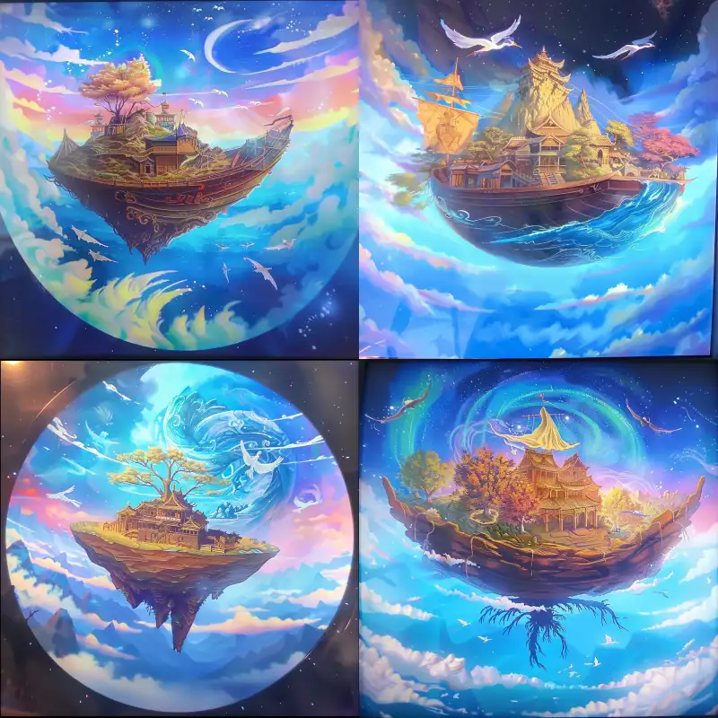 Midjourney Bot 更新时间:2024-08-12 00:15Looking up at the composition of the picture, in the world recorded in the Book of Mountains and Seas, there is a huge tree ship built by Fusang trees. The whole ship body is composed of huge Fusang trees. An ancient city building has been built on the ship. It is magnificent and magnificent. The traditional wooden structure of ancient China has a superb architectural structure. The ship body floats in the air. The ship body has a propeller structure and a huge sail structure. With the help of wind power, it roams through the mountains and seas in the void. The structure has a huge windmill and canvas, a sail structure building, and a steampunk wood structure building, with a great structure and style. The divine beast swim in the sea of clouds, and the silver white dragon leaps in the sea of clouds. The picture is drawn in a realistic CG style, with exquisite details and stunning visual effects. The building is constructed with wood and adopts a mysterious and sacred style. The wooden treehouses of the indigenous people in the abandoned Avatar are influenced by classical art and the creations of famous artists. From a distance, one can see vast landscapes stretching into the clouds, with numerous mythical creatures floating around. This is an outstanding work carefully crafted with 4K image quality, with a composition of looking up at the picture. --v 6.0 --ar 1:1 --cw 100 --sref