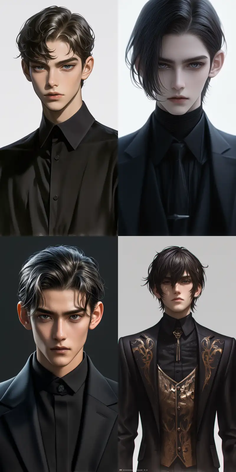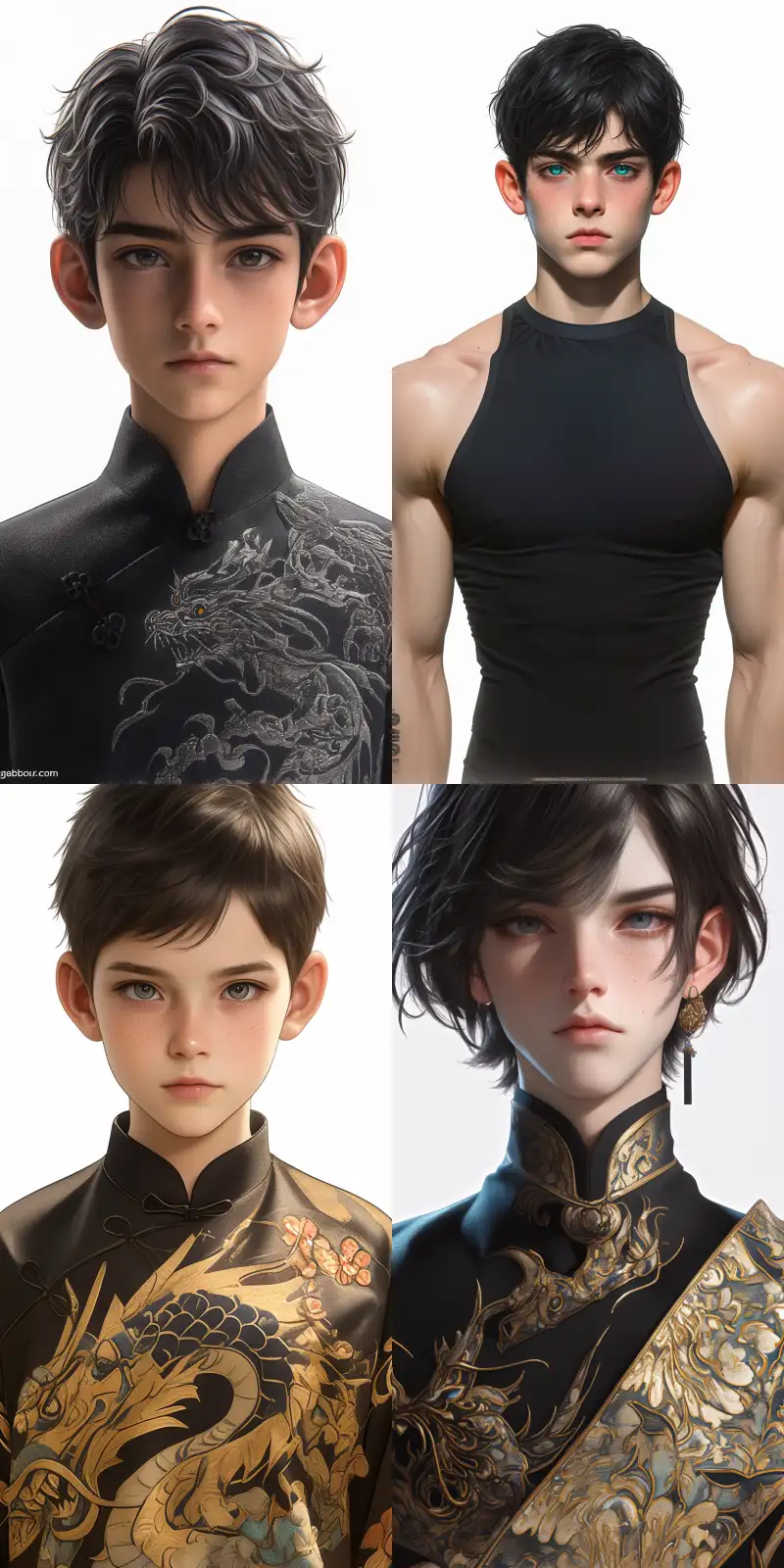 Midjourney Bot 更新时间:2024-08-07 00:06A cool and handsome boy with short black hair, dressed in black new Chinese Hanfu, with textured skin, exquisite facial features and makeup, standing character, front view, half body photo of character, very detailed and realistic, professional photography, high quality, high detail, high resolution, 8K, pure white background, --niji 6 --ar 1:2 --s 179 --c 3