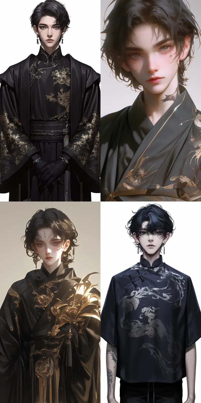 Midjourney Bot 更新时间:2024-08-07 00:10A cool and handsome boy with short black hair, wearing a modern black cheongsam, with textured skin, delicate facial features and makeup, standing character, front view, half body photo of character, very detailed and realistic, professional photography, high quality, high detail, high resolution, 8K, pure white background, --niji 6 --ar 1:2 --s 115 --c 3