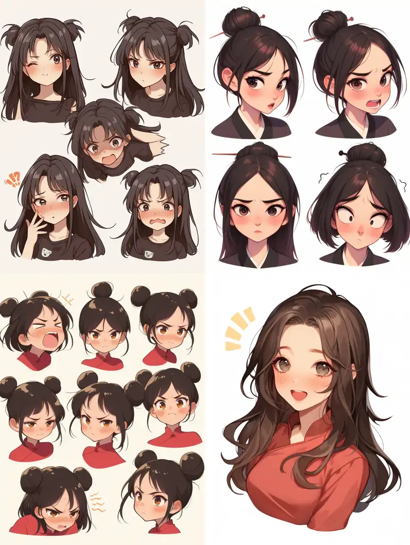 Midjourney Bot 更新时间:2024-08-07 00:07A very cute Chinese girl, with a headshot, happy, laughing, shy, surprised, confused, cute, curious, aggrieved and other expressions, white background, cartoon style --niji 6 --ar 3:4