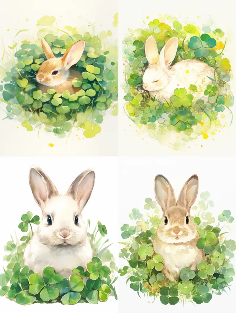 Midjourney Bot 更新时间:2024-08-07 00:10A cute long eared rabbit nestled in the center of a clover, surrounded by a row of bright green leaves and clover. Watercolor fountain pen meticulous sketch with a Pixar illustration style pen outline on a white background, exquisite details, high quality, high definition, 8K ultra high definition --niji 6 --ar 3:4