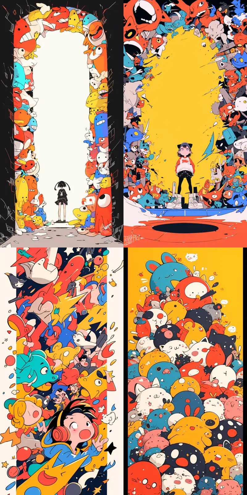 Midjourney Bot 更新时间:2024-08-07 00:11Create a high-quality image with a main focus on a large blank area in the center, with various colored graffiti on both sides. Graffiti should include cartoon characters such as animals, funny faces, superheroes, and quirky creatures. Graffiti should be tightly wrapped around the edges, leaving the central area completely blank. The overall style should be playful and imaginative, with bright colors giving a lively and eye-catching feeling. This photo is designed for the story scale of Instagram, with the blank space as the main focus, the best quality, detailed details, 8k, and realistic rendering --niji 6 --ar 1:2 --sref 1999999 --s 850