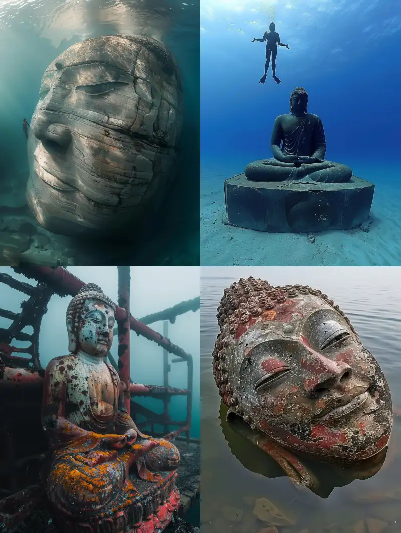 Midjourney Bot 更新时间:2024-08-03 00:12A huge Buddha statue abandoned in the deep sea, very dilapidated --v 6.0 --ar 3:4 --style raw --s 53 --c 26
