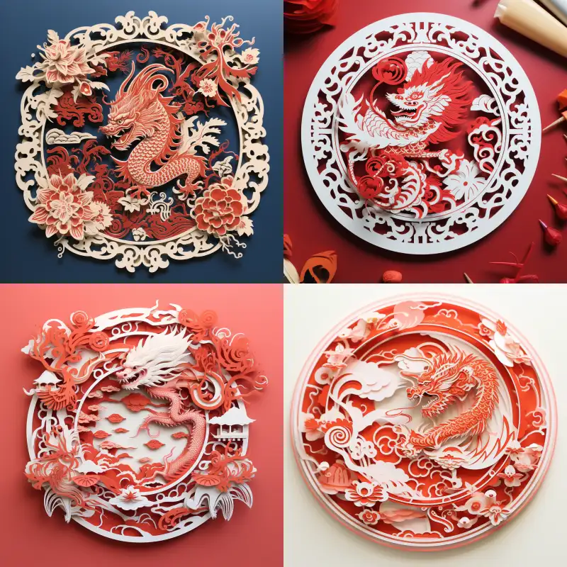 Midjourney Bot 更新时间:2024-08-03 00:15The Year of the Loong Baby Hundred Day Dinner Invitation, Dragon Element, Paper Cuttings, Luck --v 5.2 --ar 1:1