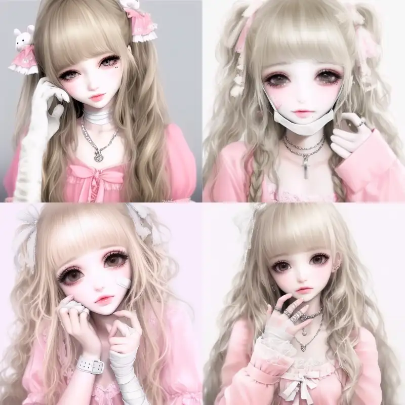Midjourney Bot 更新时间:2024-07-31 00:00A girl with long golden hair, bandages, sickly, sickly, flat bangs. --sref