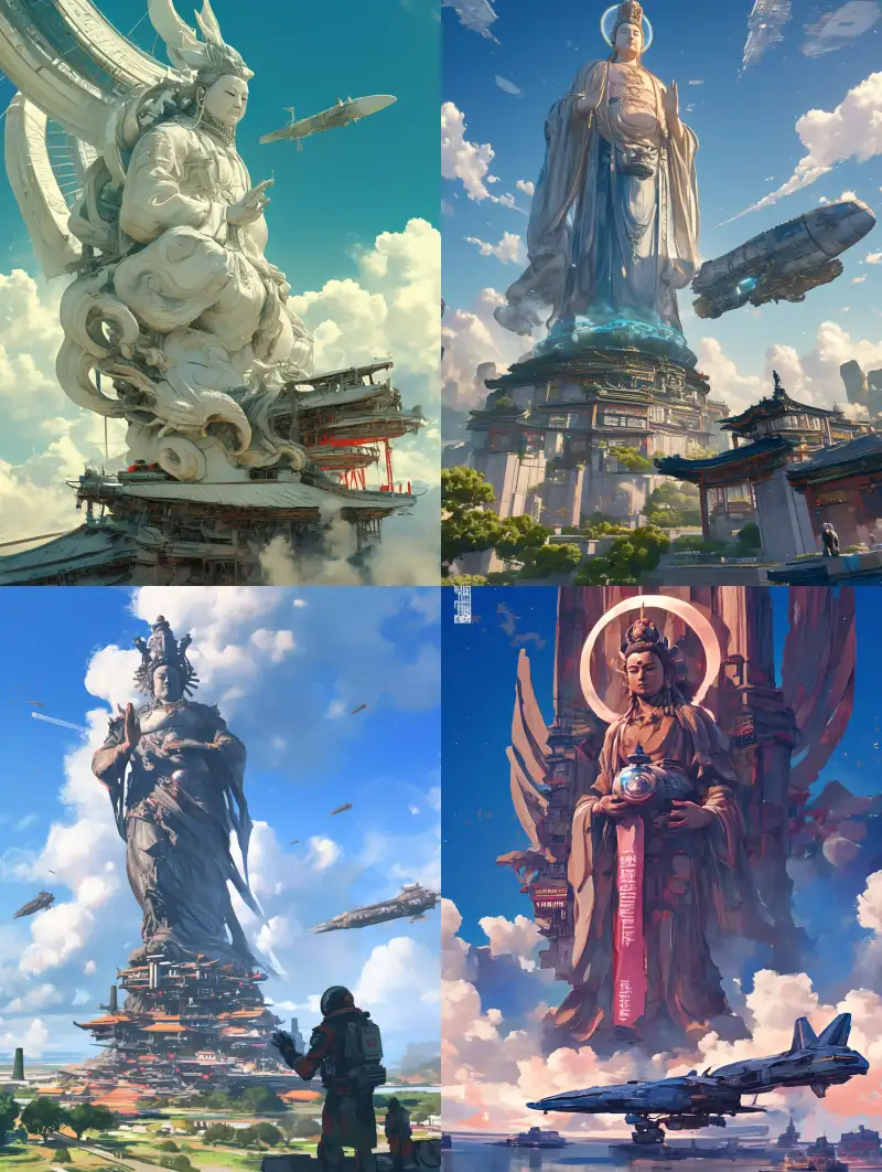 Midjourney Bot 更新时间:2024-07-31 00:01A huge statue of Guanyin, a spaceship, --niji 6 --ar 3:4 --no Face Hand deformity, Low image quality, --seed 747563229