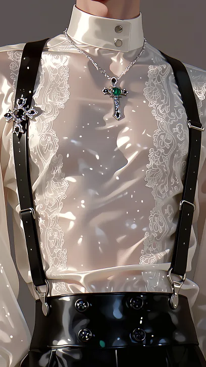 Midjourney Bot 更新时间:2026-02-18 00:09优雅禁欲冷艳男性角色,冷白瓷感肌肤,白色缎面荷叶边蕾丝立领衬衫,黑色双排扣高腰西裤,镶嵌黑宝石的银色十字架项链,镶嵌绿宝石的银质十字护手剑,上半身特写,干净中性灰背景,柔和漫射光,丝滑缎面质感,精致蕾丝质感,冷冽金属光泽,复古优雅贵族氛围,电影级灯光,高对比度,华丽克制气质,蓝色宝石饰品 斜线构图,人物居中,极致细节,暗黑哥特贵族美学,华丽宫廷风,欧式复古贵族美学,华丽洛可可风格,酒红黑银配色,柔焦光晕,柔和光影,金属质感,丝绒质感,梦幻朦胧氛围,电影级灯光,干净背景,高对比度,华丽危险气质,顶级画质,8K超高清 --zoom 1.5 --ar 9:16 --c 50 --stylize 1000 --niji 7