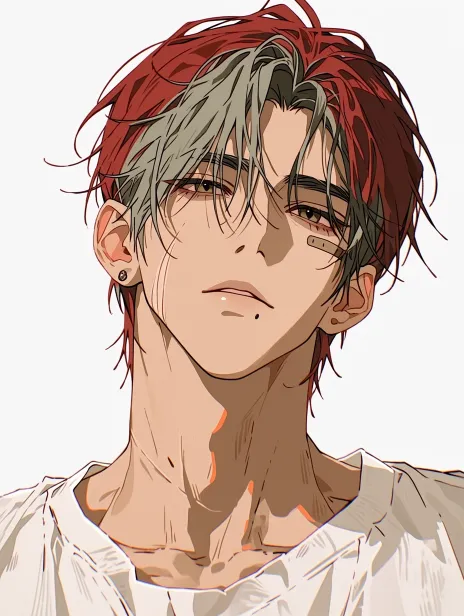 Midjourney Bot 更新时间:2026-02-18 00:21一个卡通可爱的迷你Q版小人 小人是男生 小人有着红色头发 小人的发型为红色狼尾 小人的神情淡漠清冷而疏离 小人的左侧脸有一个创口贴 小人的左眼下有一颗淡痣 小人的耳朵上没有装饰 小人穿着白色衬衫 半身特写 卡通可爱 迷你Q版的小人 --ar 3:4 --stylize 800 --niji 7 --sref https://images.gogpt.vip/aigf/m_origin/20260205/2041601/03ux52xpfpqp2c10.jpg https://images.gogpt.vip/aigf/m_origin/20260218/2041601/svtordy0n309f6pw.jpg --sw 250